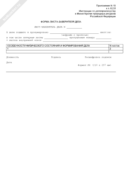 - 2182Форма листа-заверителя дела в Министерстве природных ресурсов Российской Федерации