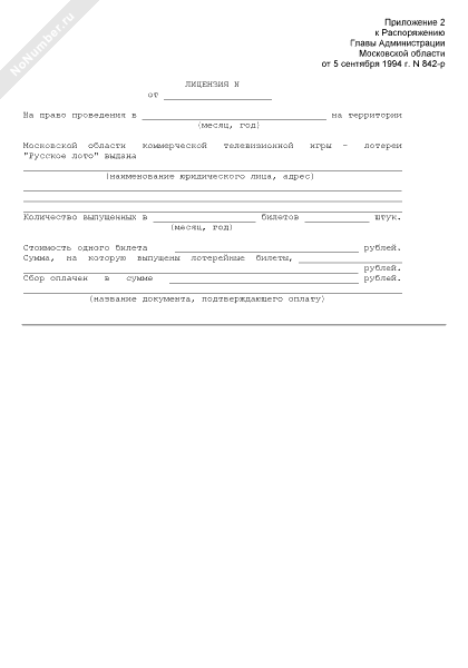 - 2184Форма лицензии на право проведения лотереи на территории Московской области
