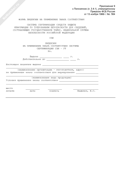 - 2186Форма лицензии на применение знака соответствия средств защиты информации по требованиям безопасности для сведений, составляющих государственную тайну, Федеральной службы безопасности Российской Федерации