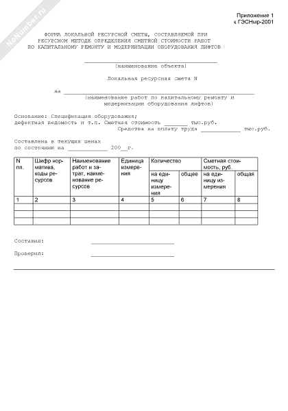- 2193Форма локальной ресурсной сметы, составляемой при ресурсном методе определения сметной стоимости работ по капитальному ремонту и модернизации оборудования лифтов