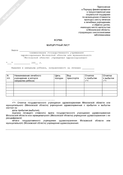 - 2194Форма маршрутного листа по возмещению стоимости проезда к месту лечения в лечебных учреждениях и обратно детям, имеющим место жительства в Московской области, страдающим онкологическими заболеваниями