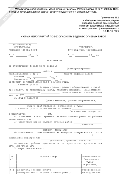 - 2198Форма мероприятий по безопасному ведению огневых работ в горных выработках и надшахтных зданиях угольных (сланцевых) шахт