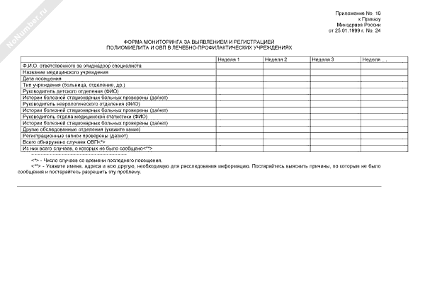 - 2200Форма мониторинга за выявлением и регистрацией полиомиелита и ОВП в лечебно-профилактических учреждениях