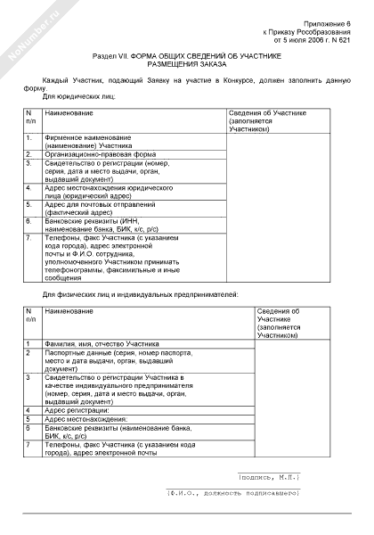 - 2305Форма общих сведений об участнике размещения заказа для участия в конкурсе на выполнение работ (оказание услуг) по проекту, проводимому в рамках приоритетного национального проекта «Образование»