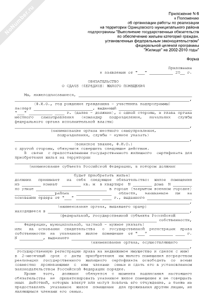 - 2311Форма обязательства о сдаче (передаче) жилого помещения, расположенного на территории Одинцовского муниципального района Московской области