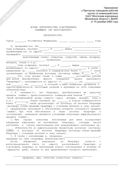 - 2308Форма обязательства родственника заемщика (не залогодателя) для получения кредита по кредитному договору на приобретение квартиры с оформлением закладной по договору ипотеки