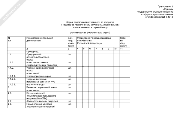 - 2318Форма оперативной отчетности по контролю и надзору за геологическим изучением, рациональным использованием и охраной недр