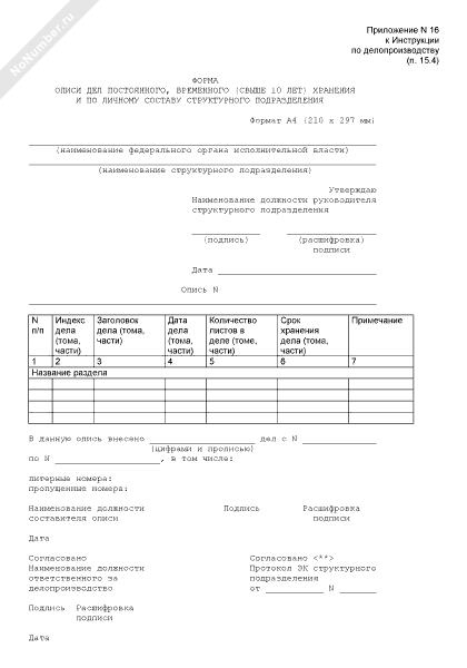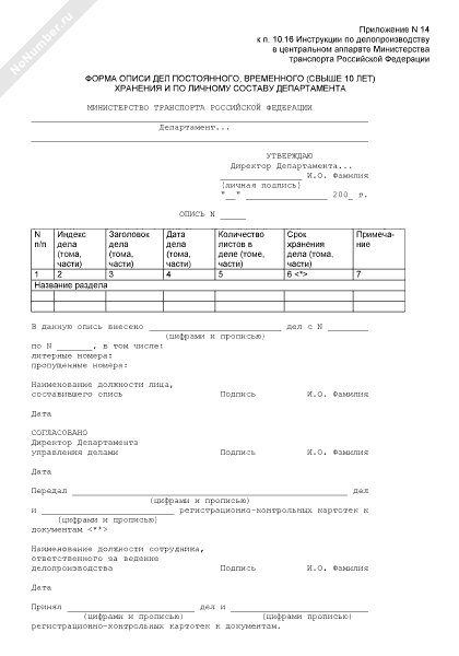 - 2354Форма описи дел постоянного, временного (свыше 10 лет) хранения и по личному составу департамента Минтранса РФ