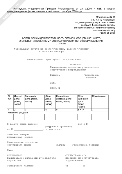 - 2346Форма описи дел постоянного, временного (свыше 10 лет) хранения и по личному составу структурного подразделения Федеральной службы по экологическому, технологическому и атомному надзору