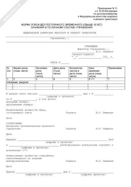 - 2351Форма описи дел постоянного, временного (свыше 10 лет) хранения и по личному составу управления в Федеральном агентстве морского и речного транспорта (Росморречфлоте)