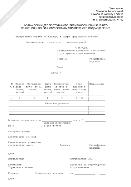 - 2345Форма описи дел постоянного, временного (свыше 10 лет) хранения и по личному составу структурного подразделения Федеральной службы по надзору в сфере природопользования