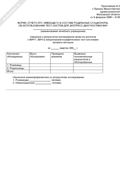 - 2413Форма отчета лечебно-профилактического учреждения, имеющего в составе родильные стационары, об использовании тест-систем для экспресс-диагностики ВИЧ