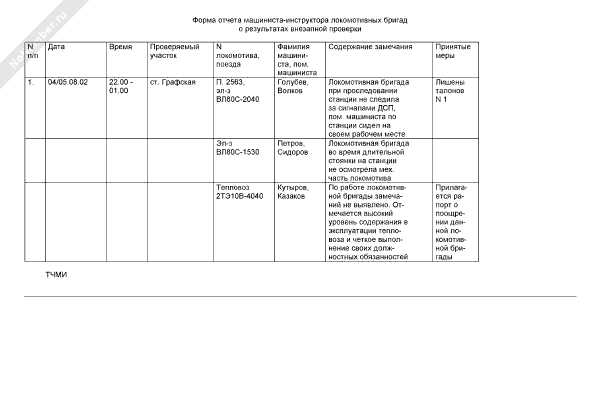 - 2416Форма отчета машиниста-инструктора локомотивных бригад о результатах внезапной проверки