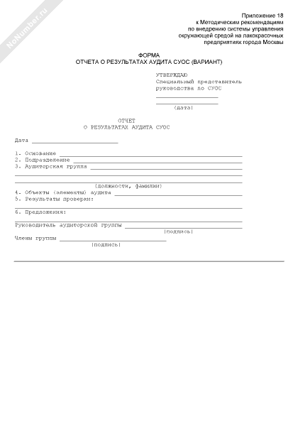 - 2420Форма отчета о результатах аудита системы управления окружающей средой на лакокрасочных предприятиях города Москвы (вариант)