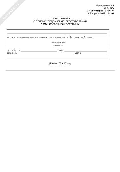 - 2403Форма отметки о приеме уведомления, проставляемая администрацией гостиницы