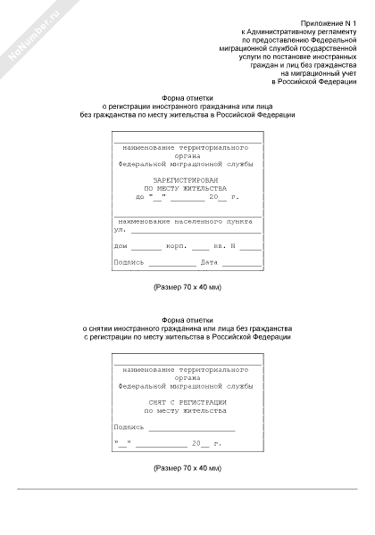- 2404Форма отметки о регистрации (о снятии с регистрации) иностранного гражданина или лица без гражданства по месту жительства в Российской Федерации