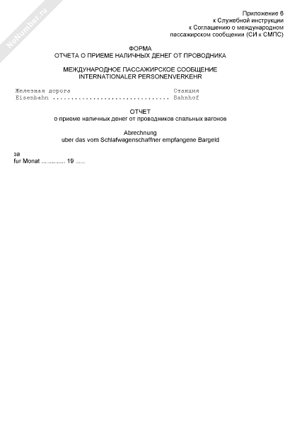 - 2429Форма отчета о приеме наличных денег от проводника (международное пассажирское сообщение) (рус./нем.)