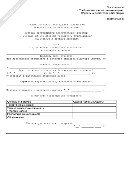 - 2432Форма отчета о прохождении стажировки кандидатом в эксперты-аудиторы системы сертификации оборудования, изделий и технологий для ядерных установок, радиационных источников и пунктов хранения