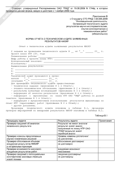 - 2437Форма отчета о техническом аудите заявленных результатов научно-исследовательских, опытно-конструкторских и технологических работ (обязательная)