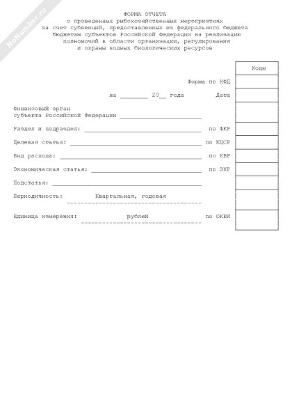 - 2450Форма отчета о проведенных рыбохозяйственных мероприятиях за счет субвенций, предоставленных из федерального бюджета бюджетам субъектов Российской Федерации на реализацию полномочий в области организации, регулирования и охраны водных биологических ресурсов