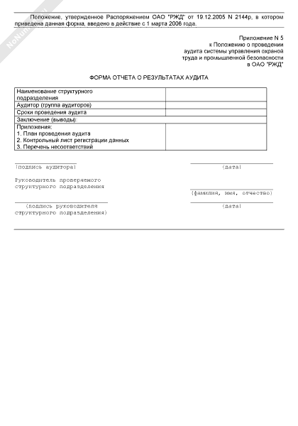 - 2443Форма отчета о результатах аудита системы управления охраной труда и промышленной безопасности в ОАО «РЖД»