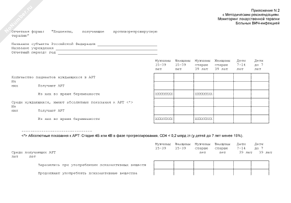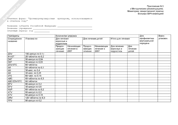 - 2514Форма отчета, представляемая в федеральный научно-методический центр по профилактике и борьбе со СПИДом «Противоретровирусные препараты, использовавшиеся в отчетном году»