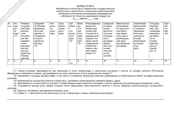 - 2505Форма отчета Федерального агентства по управлению государственным имуществом о заключении и исполнении инвестиционных договоров в отношении находящихся в федеральной собственности объектов недвижимого имущества