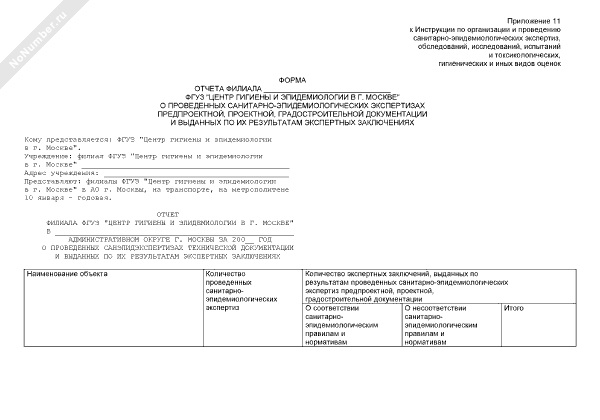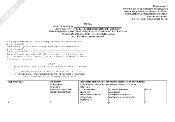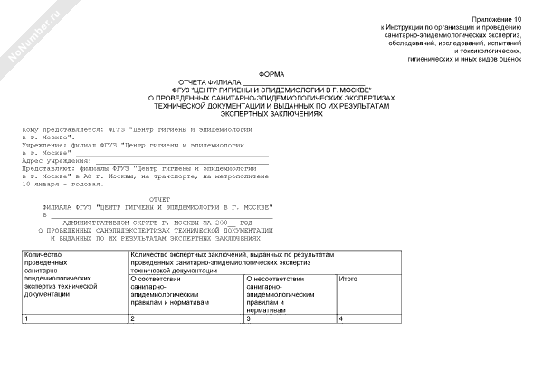 - 2509Форма отчета филиала ФГУЗ «Центр гигиены и эпидемиологии в г. Москве» о проведенных санитарно-эпидемиологических экспертизах технической документации и выданных по их результатам экспертных заключениях
