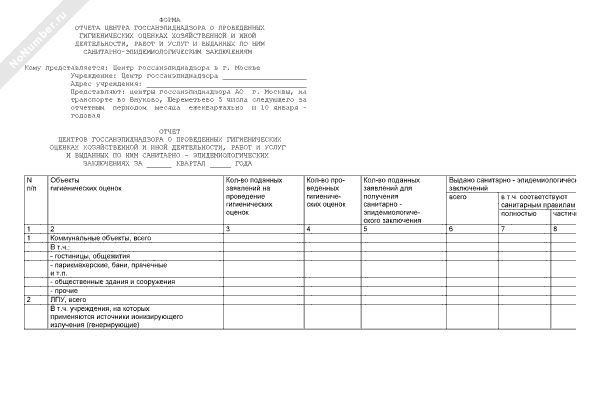 - 2511Форма отчета Центра госсанэпиднадзора о проведенных гигиенических оценках хозяйственной и иной деятельности, работ и услуг и выданных по ним санитарно-эпидемиологическим заключениям