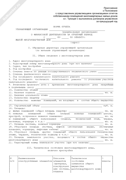 - 2503Форма отчета управляющей организации жилым многоквартирным домом в г. Троицке Московской области о финансовой деятельности за отчетный период