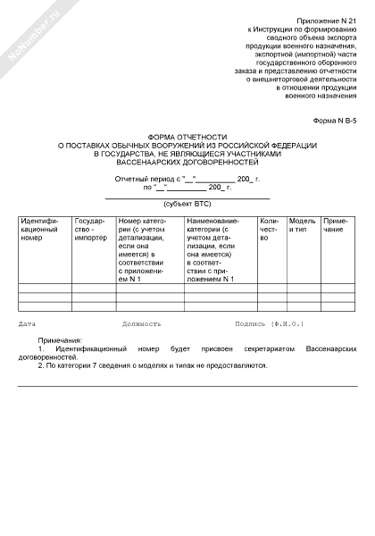 - 2517Форма отчетности о поставках обычных вооружений из Российской Федерации в государства, не являющиеся участниками Вассенаарских договоренностей. Форма № В-5