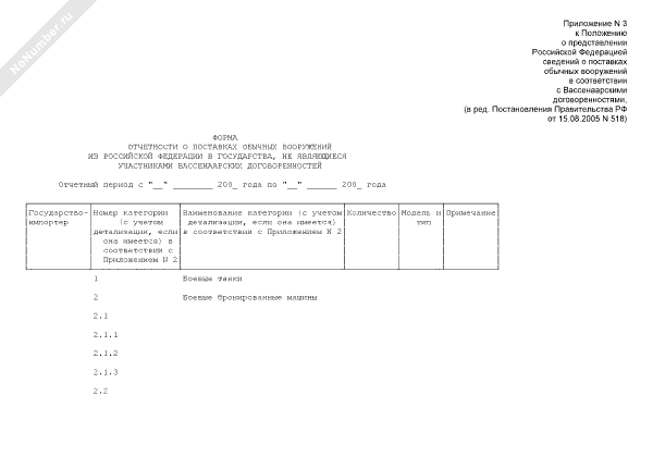 - 2516Форма отчетности о поставках обычных вооружений из Российской Федерации в государства, не являющиеся участниками Вассенаарских договоренностей