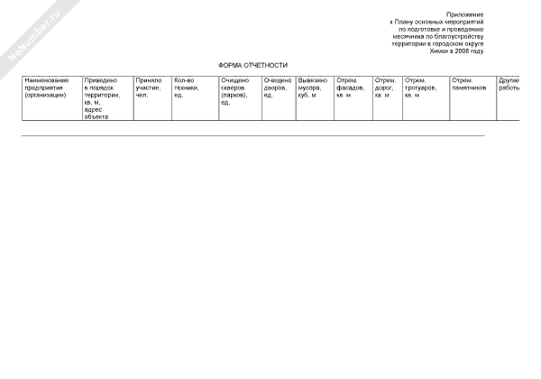- 2520Форма отчетности по подготовке и проведению месячника по благоустройству территории в городском округе Химки Московской области в 2008 году