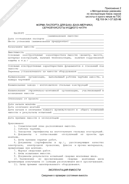 - 2584Форма паспорта для бака (бака-мерника) серной кислоты и едкого натра