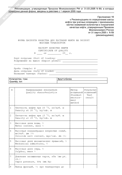 - 2581Форма паспорта качества для поставки нефти на экспорт морским транспортом (рус./англ.)