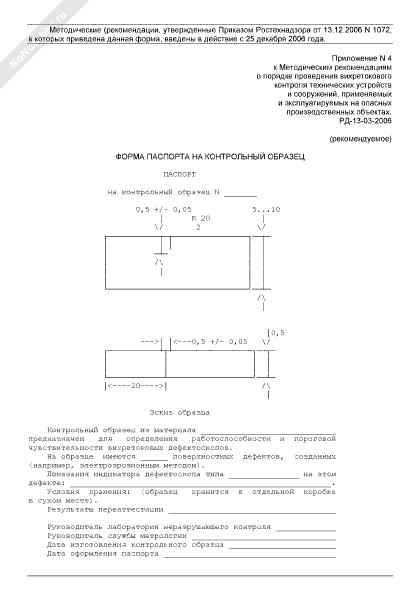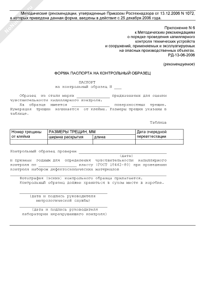 - 2591Форма паспорта на контрольный образец для оценки чувствительности капиллярного контроля