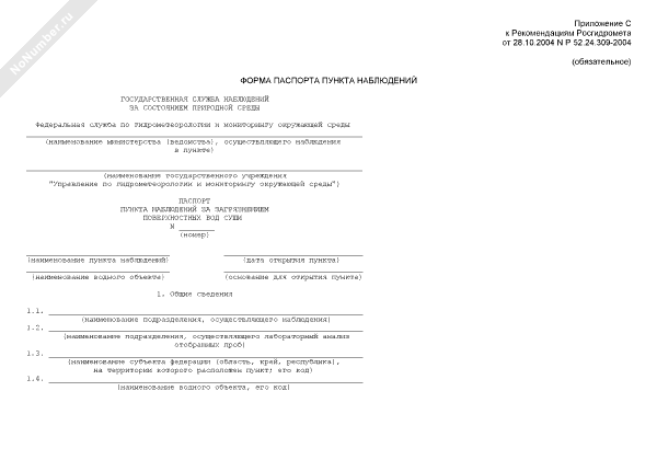 - 2585Форма паспорта пункта наблюдений за загрязнением поверхностных вод суши