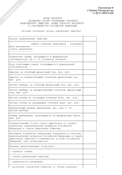 - 2582Форма паспорта заседания органа управления открытого акционерного общества, акции которого находятся в собственности Российской Федерации