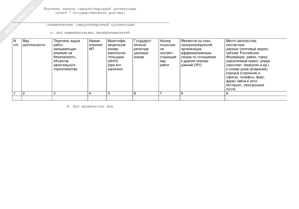 - 2670Форма перечня членов саморегулируемой организации, основанной на членстве лиц, выполняющих инженерные изыскания объектов капитального строительства (пункт 7 государственного реестра)