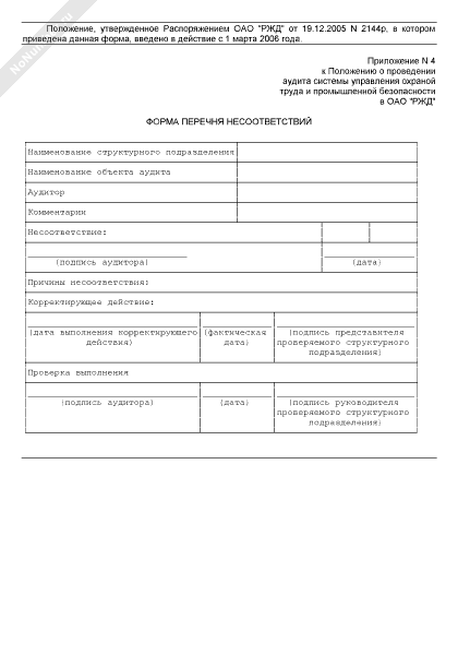 - 2664Форма перечня несоответствий, выявленных в ходе проведения аудита системы управления охраной труда и промышленной безопасности в ОАО «РЖД»