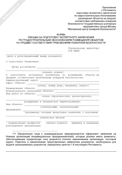 - 2673Форма письма на подготовку экспертного заключения по градостроительным обоснованиям размещения объектов на предмет соответствия требованиям пожарной безопасности государственным унитарным предприятием города Москвы «Московский центр пожарной безопасности»