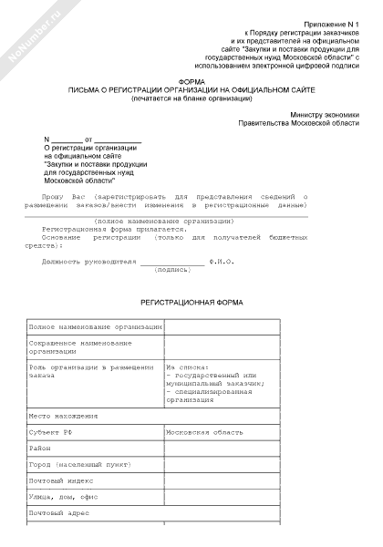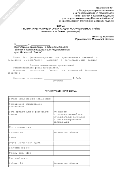 - 2676Форма письма о регистрации организации на официальном сайте «Закупки и поставки продукции для государственных нужд Московской области» без использования электронной цифровой подписи