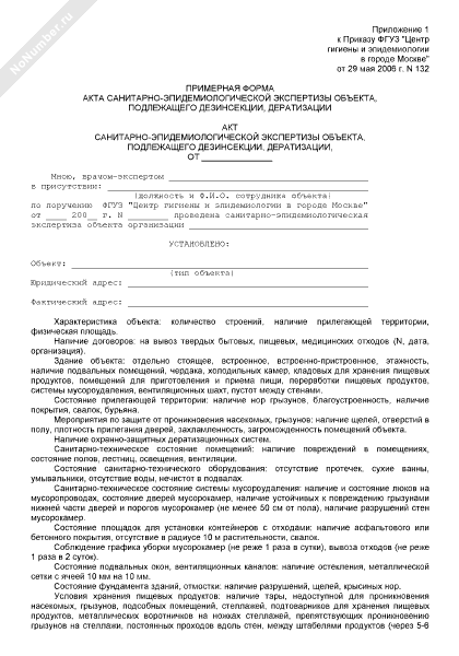 - 308Примерная форма акта санитарно-эпидемиологической экспертизы объекта, подлежащего дезинсекции, дератизации в городе Москве