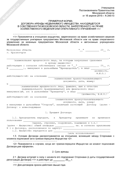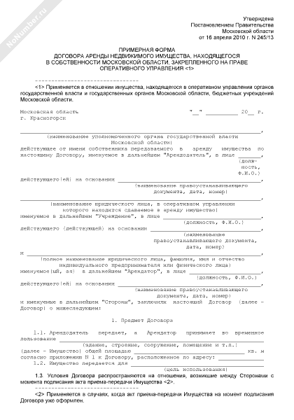 - 316Примерная форма договора аренды недвижимого имущества, находящегося в собственности Московской области, закрепленного на праве оперативного управления