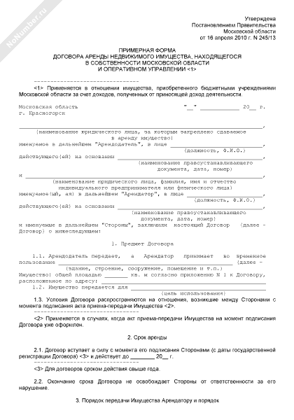 - 318Примерная форма договора аренды недвижимого имущества, находящегося в собственности Московской области и оперативном управлении