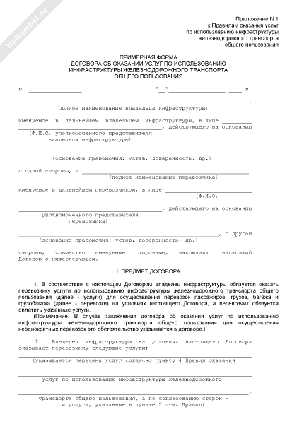 - 309Примерная форма договора об оказании услуг по использованию инфраструктуры железнодорожного транспорта общего пользования