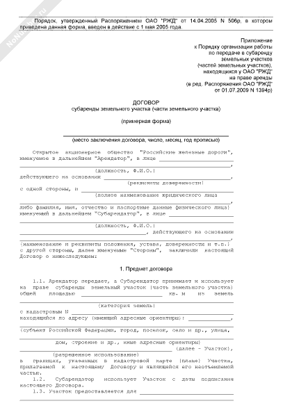 - 320Примерная форма договора субаренды земельного участка (части земельного участка)