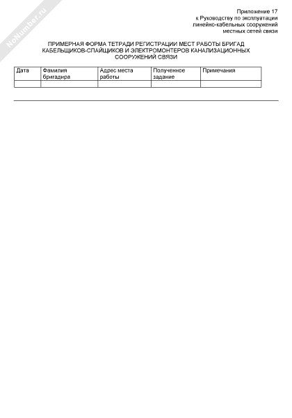 - 305Примерная форма тетради регистрации мест работы бригад кабельщиков-спайщиков и электромонтеров канализационных сооружений связи