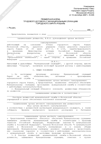 - 303Примерная форма трудового договора с муниципальным служащим городского округа Рошаль Московской области