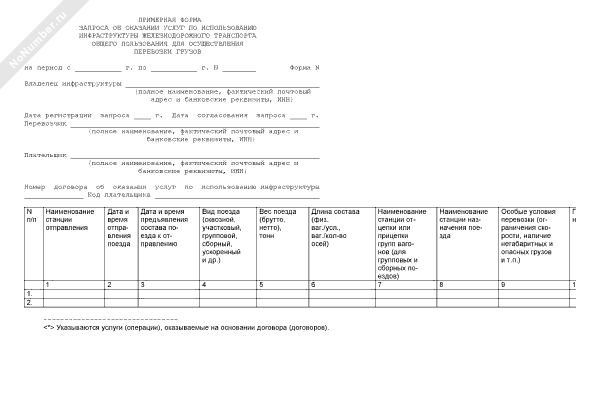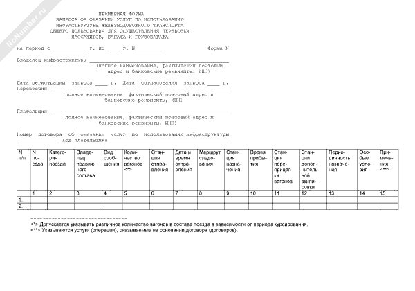 - 311Примерная форма запроса об оказании услуг по использованию инфраструктуры железнодорожного транспорта общего пользования для осуществления перевозки пассажиров, багажа и грузобагажа